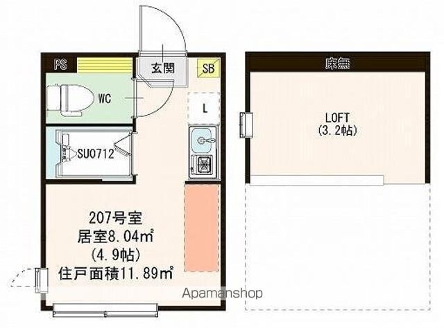 専有面積 | 11.89㎡ (3.59坪) | バルコニー面積 | - |