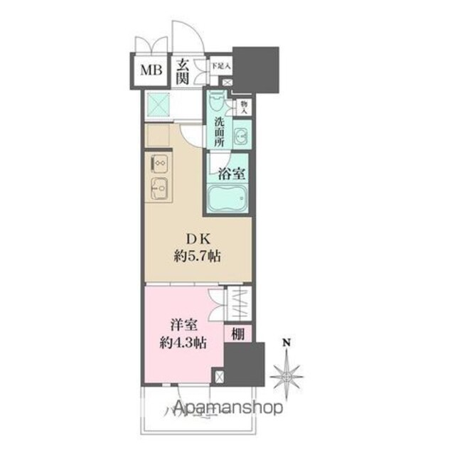 | 築年月 | 2022年05月 | 間取り | 1DK (内訳:DK5.7 洋4.3) |
