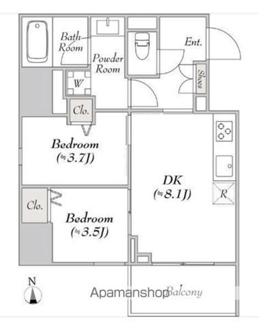 | 築年月 | 2025年06月 | 間取り | 2DK (内訳:DK8.1 洋3.7 洋3.5) |