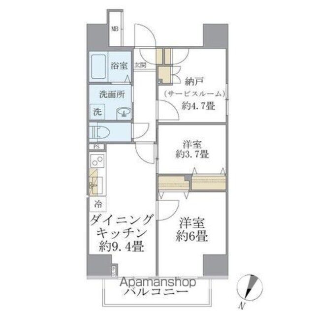 | 築年月 | 2013年09月 | 間取り | 2SDK (内訳:DK9.4 洋3.7 洋6 S4.7) |