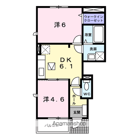築年月 | 2006年01月 | 間取り | 2DK (内訳:DK6.1 洋6 洋4.6) |