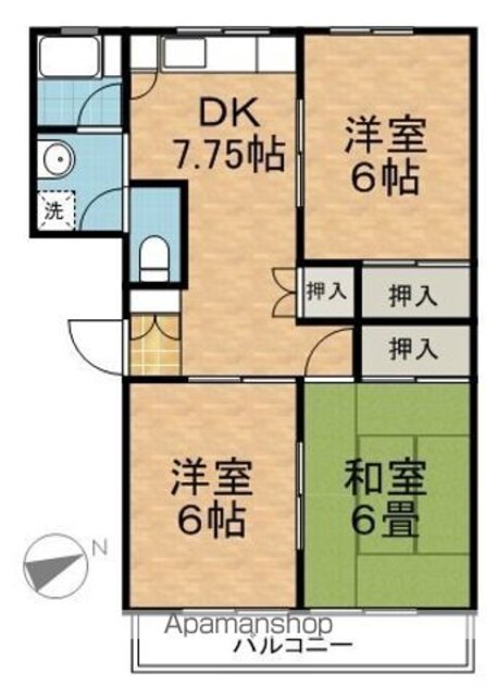 | 築年月 | 1983年10月 | 間取り | 3DK (内訳:洋6 洋6 和6 DK7.7) |