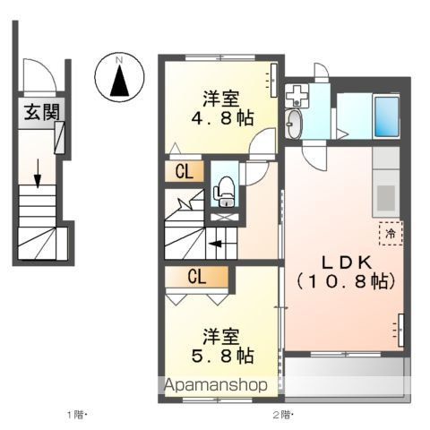 | 築年月 | 2018年03月 | 間取り | 2LDK (内訳:LDK10.7 洋6 洋4.8) |