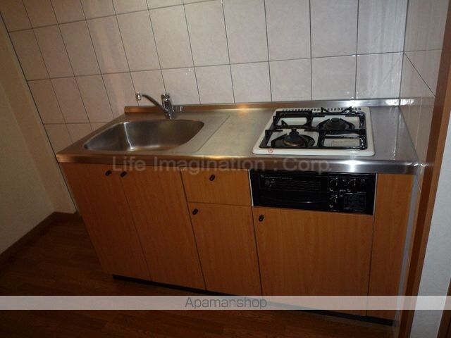 | 設備 | ガス:プロパン、バス・トイレ別、シャワー、コンロ:ガス、コンロの口数:2口、システムキッチン、給湯、洗髪洗面化粧台、冷暖房:完備、洗濯機置場:室内、BSアンテナ、バルコニー、フローリング、駐輪場あり、インターネット:対応、角部屋、温水洗浄便座、独立洗面 |