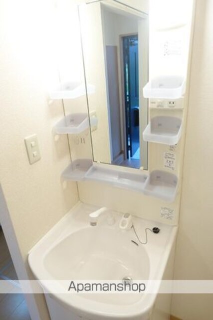 | 設備 | ガス:プロパン、バス・トイレ別、シャワー、コンロ:ガス、システムキッチン、洗髪洗面化粧台、冷暖房:完備、床下収納、洗濯機置場:室内、BSアンテナ、バルコニー、フローリング、駐輪場あり、TVドアホン、温水洗浄便座、照明器具 |