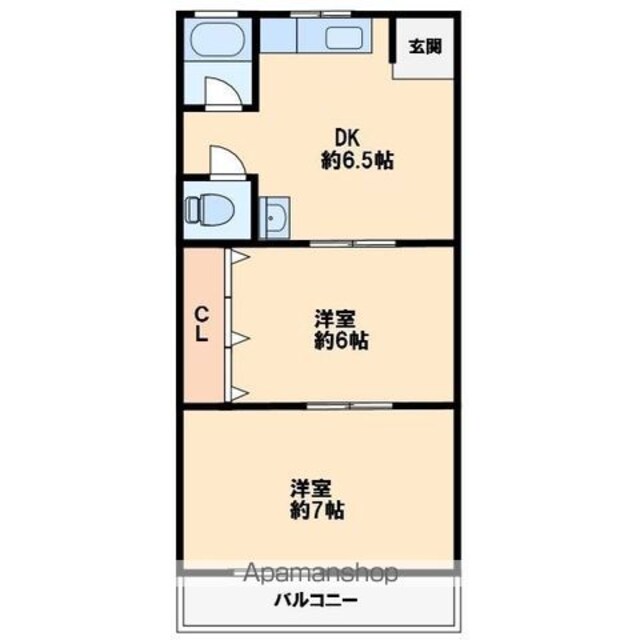 | 築年月 | 1985年10月 | 間取り | 2DK (内訳:DK6.5 洋7 洋6) |