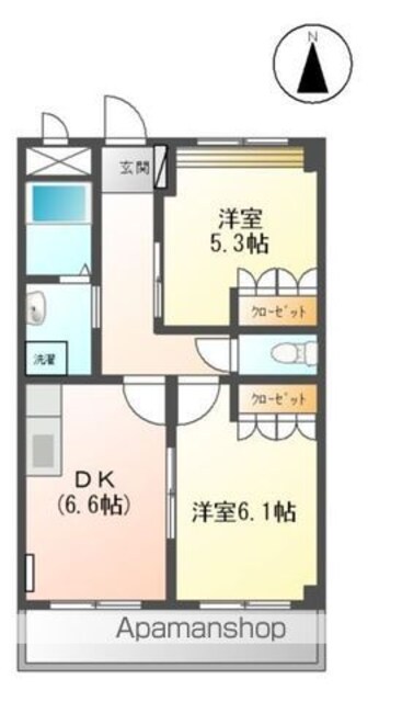 | 築年月 | 2010年04月 | 間取り | 2DK (内訳:DK6.6 洋6.1 洋5.3) |