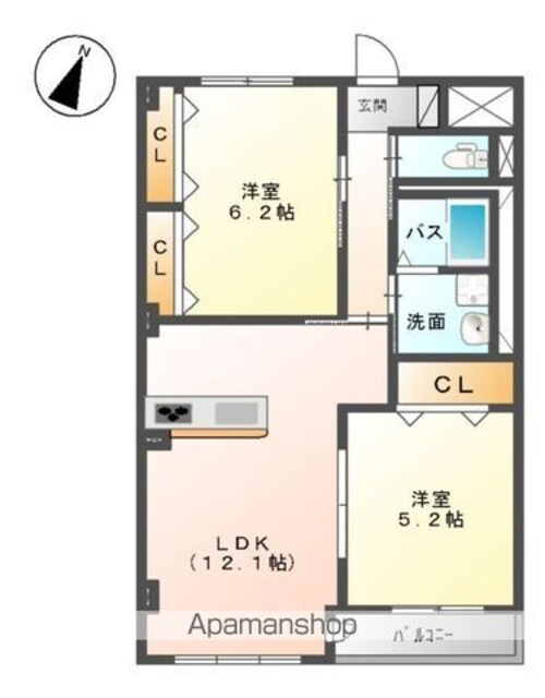築年月 | 2013年10月 | 間取り | 2LDK (内訳:LDK12.1 洋6.2 LDK12.1) |