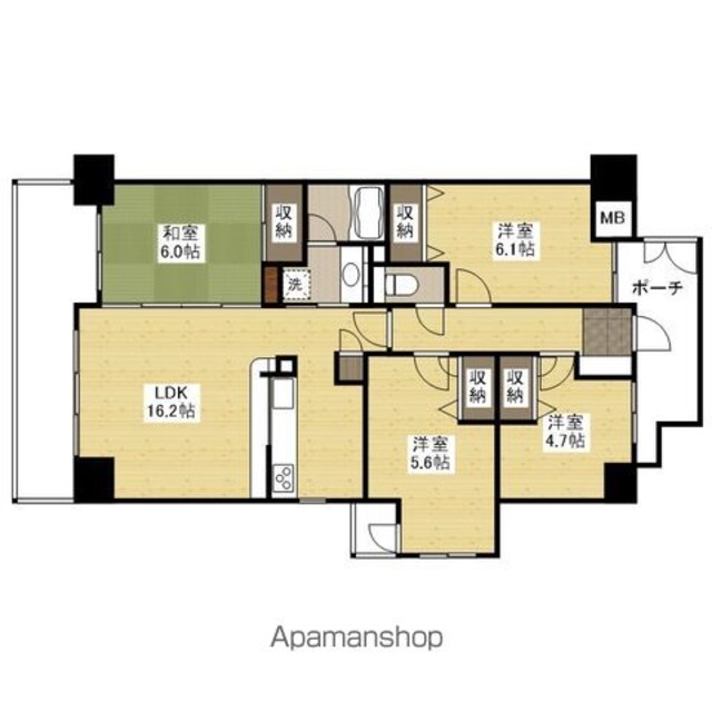| 築年月 | 1997年01月 | 間取り | 4LDK (内訳:LDK16.2 和6 洋6.1 洋5.6 洋4.7) |