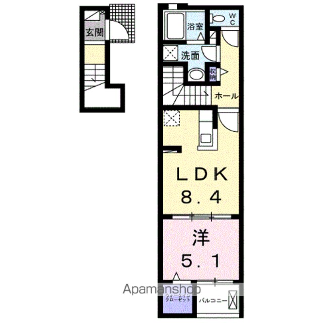 アクアプラ浅江6 Ⅱ(1LDK 2階部分)