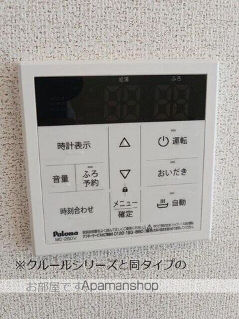 | 設備 | ガス:プロパン、バス・トイレ別、シャワー、コンロ:IH、システムキッチン、給湯、追い焚き、洗髪洗面化粧台、冷暖房:完備、床下収納、ウォークインクローゼット、洗濯機置場:室内、BSアンテナ、フローリング、宅配ボックス、駐輪場あり、インターネット:光、角部屋、TVドアホン、温水洗浄便座、複層ガラス、24H管理、浴室乾燥機、独立洗面、照明器具 |