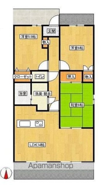 | 築年月 | 1996年01月 | 間取り | 3LDK (内訳:LDK14 洋6 洋5.5 和6) |