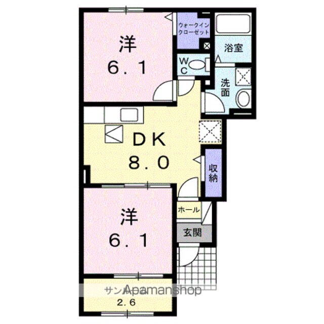 | 築年月 | 2016年05月 | 間取り | 2DK (内訳:DK8 洋6.1 洋6.1) |