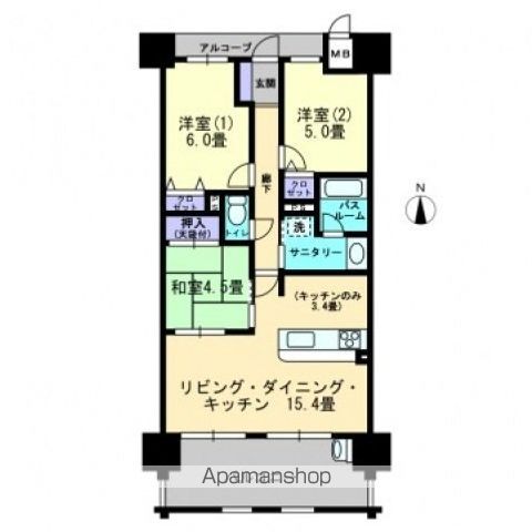 | 築年月 | 2010年05月 | 間取り | 3LDK (内訳:LDK15.4 和4.5 洋5 洋6 K3.4) |