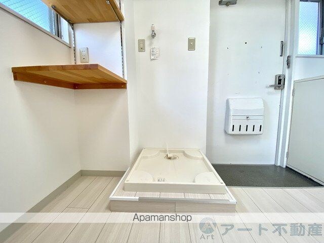 | 設備 | バス・トイレ別、シャワー、コンロ:ガス、コンロの口数:2口、システムキッチン、給湯、冷暖房:完備、洗濯機置場:室内、出窓、バルコニー、フローリング、駐輪場あり、バイク置き場あり、インターネット:対応、角部屋、TVドアホン、温水洗浄便座、24H管理、照明器具 |
