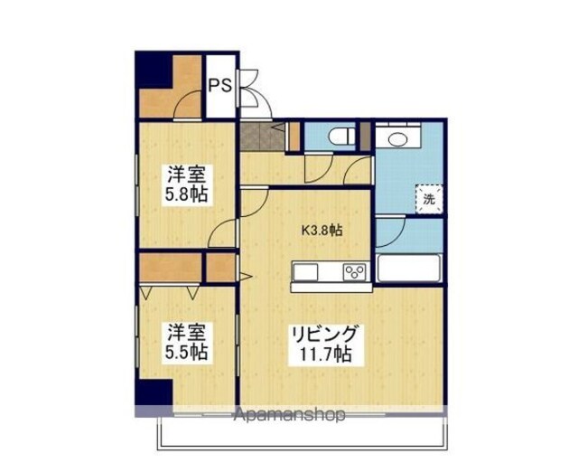 | 築年月 | 2017年09月 | 間取り | 2LDK (内訳:LDK15.5 洋5.8 洋5.8) |