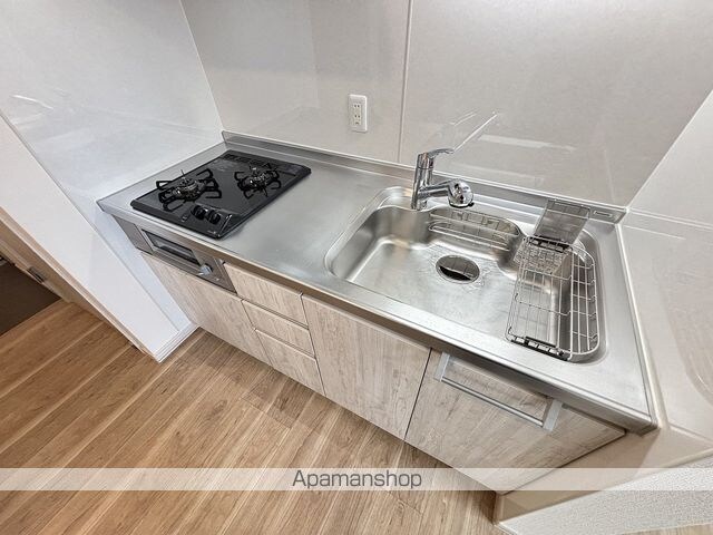 | 設備 | ガス:都市、バス・トイレ別、シャワー、コンロ:ガス、システムキッチン、給湯、洗髪洗面化粧台、冷暖房:完備、洗濯機置場:室内、フローリング、駐輪場あり、TVドアホン、温水洗浄便座、独立洗面 |