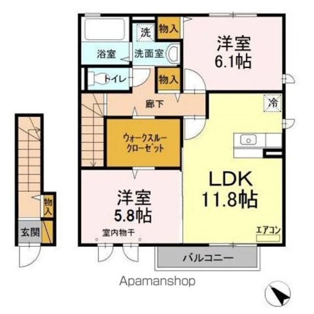 | 築年月 | 2011年06月 | 間取り | 2LDK (内訳:LDK11.8 洋6.1 洋5.8) |