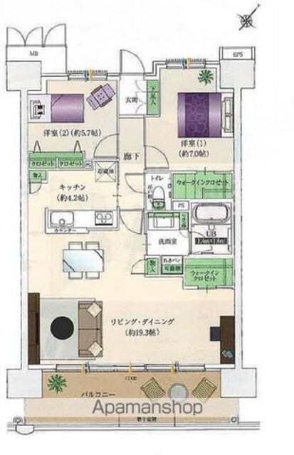築年月 | 2021年03月 | 間取り | 2LDK (内訳:洋5.7 洋7 LDK23.5) |