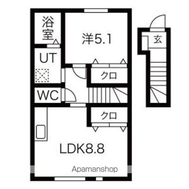 ワンリッチ金ヶ崎C(1LDK 2階部分)