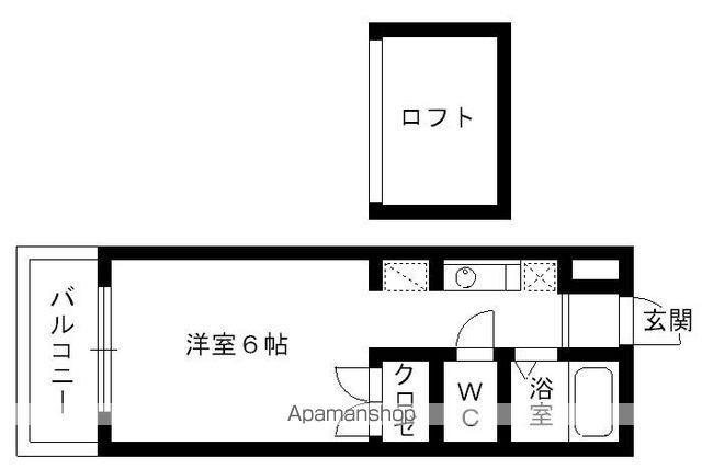 | 設備 | ガス:プロパン、バス・トイレ別、シャワー、コンロ:ガス、コンロの口数:2口、給湯、冷暖房:完備、ロフト付き、CATV、バルコニー、フローリング、駐輪場あり、インターネット:光、24H管理 |