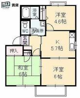 | 築年月 | 1998年01月 | 間取り | 3K (内訳:K5.7 洋6 洋4.6 和6) |
