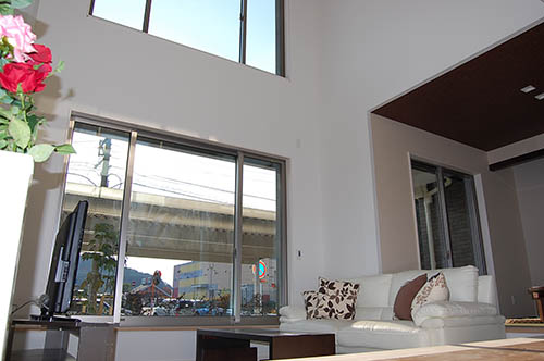 こちらがリビング上の吹き抜け。明るく気持ちのいい抜け感です。